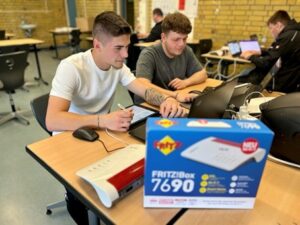 Dank der großzügigen Unterstützung des Fördervereins konnten wir neue Fritz!Boxen für unseren Unterricht anschaffen und diese erstmals erfolgreich einsetzen. Im Rahmen der Ausbildung zum Informationselektroniker:in dienen die Geräte nicht dem WLAN-Empfang für die eigenen Endgeräte, sondern ermöglichen unseren Schülerinnen und Schülern praxisnahe Übungen zur Netzwerkkonfiguration.